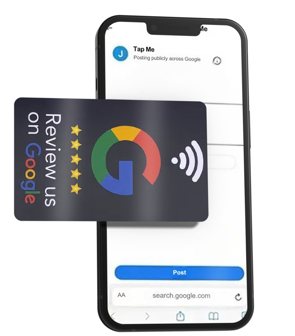 Experience the power of effortless feedback with Tap Me Get Me! Our innovative technology utilizes NFC (Near Field Communication) to make leaving reviews easier than ever. Simply let your customers tap their phone on your business card or stand, and they will be instantly directed to your Google My Business page to leave a review. No more tedious searching, typing, or navigating – just tap, review, and go! With Tap Me Get Me, we’re making it convenient for your valued customers to share their feedback, helping you to continually improve and provide the best possible experience.